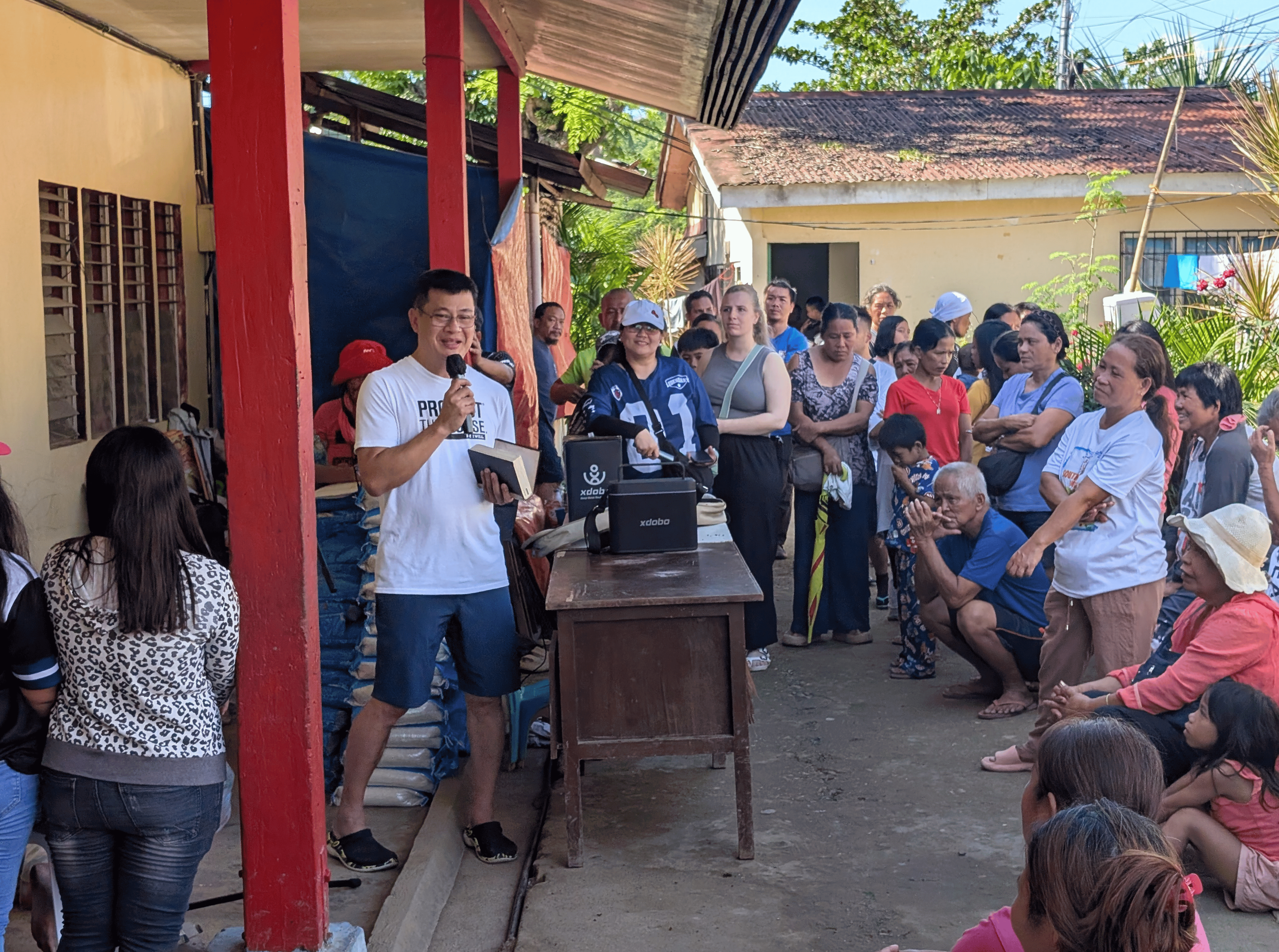 „Wir waren überrascht vom Ausmaß der Zerstörung, die die Sturmflut vor fünf Wochen in Liloan, einem Vorort von Cebu City, angerichtet hatte. Ein riesiges Gebiet war überflutet und viele Häuser zerstört. Wir beteten und lobten Gott an mehreren Orten und neben einer zerstörten Schule konnten wir Kontakt zu betroffenen Familien in einer Notunterkunft aufnehmen. Wir hatten das Gefühl, dass dies der richtige Ort war, um zu helfen, und packten Hilfsgüter zusammen. Aber neben der materiellen Hilfe wollten wir ihnen vor allem auch das Evangelium, das Brot des Lebens, bringen. Also kehrten wir am nächsten Tag dorthin zurück und nahmen uns zuerst Zeit um mit den Menschen anzubeten und zu beten. Viele Menschen öffneten sich, teilten ihre Geschichten und ihren Schmerz mit uns und wir konnten für sie beten und sie ermutigen. Später verteilten wir die Lebensmittel. Da solche Verteilungen schnell außer Kontrolle geraten können, beteten wir vorher gezielt um Gottes Frieden und seinen Schutz für die gesamte Zeit. Und es war beeindruckend, wie ruhig und geordnet alles ablief. Die Atmosphäre war wirklich erfüllt von Gottes Frieden und Freude, und sogar die Menschen sagten, dass diese Verteilung anders war als bei anderen Helfern. Die Gegenwart Gottes macht den Unterschied!