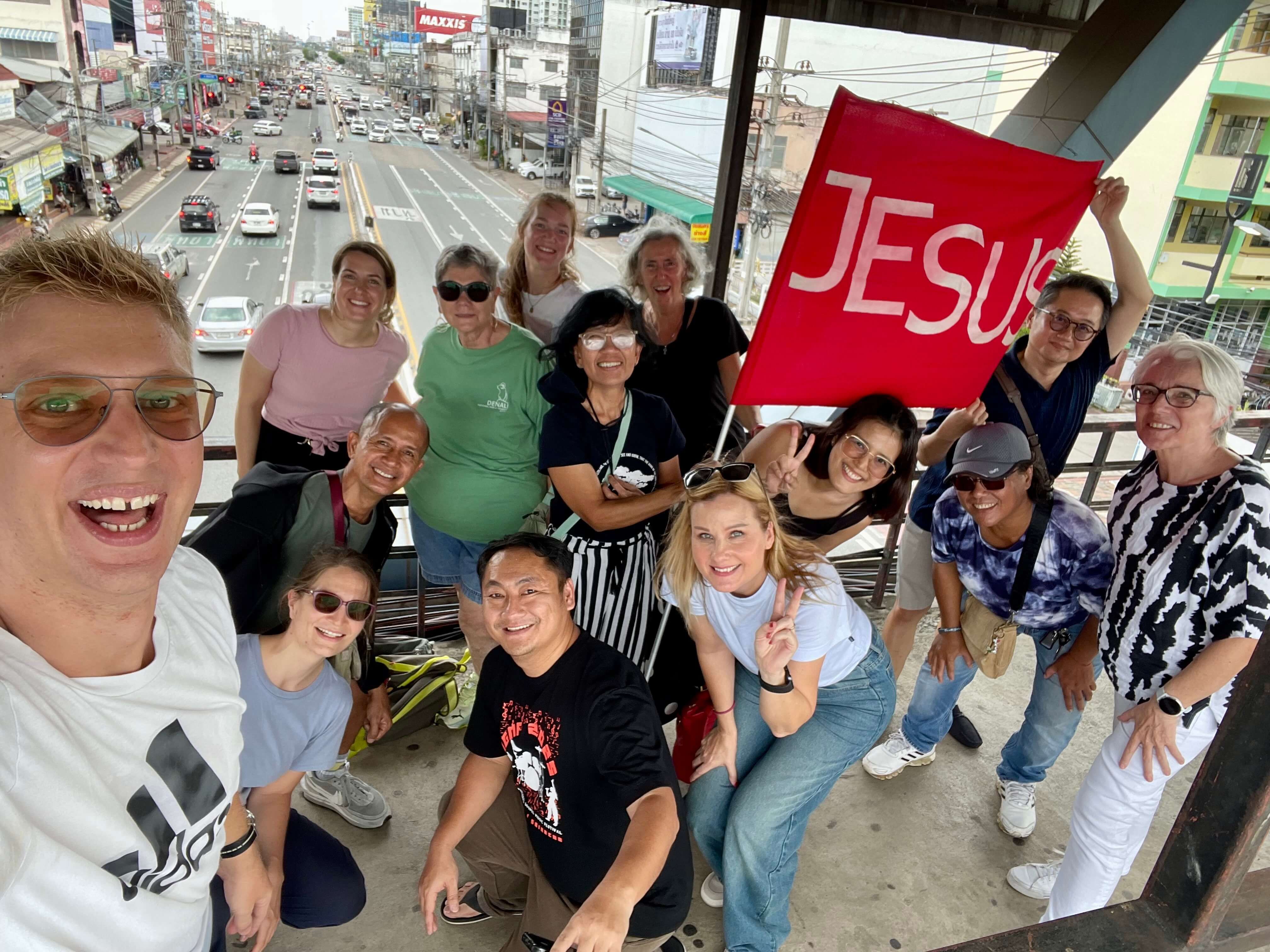 Clockwise, we continued: In the east of Pattaya, we gathered near the highway—the main artery to the city. There, we received a Bible verse that had repeatedly been shared at interdenominational meetings in the city: “Behold, I am doing a new thing; it is springing forth—do you not perceive it? I will make a way in the wilderness and rivers in the desert.” (From Isaiah 42:19). Concurrently, an powerful downpour enveloped the city around us.